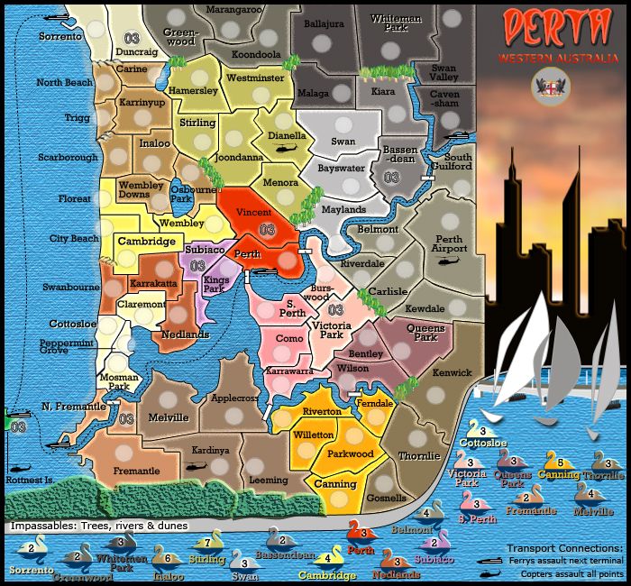 Graphics FeaturesI hope the map will feature the skyline of Perth at night reflected in the Swan River below.